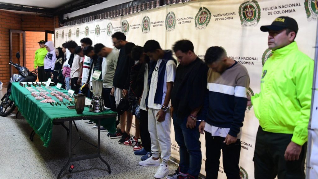 La Policía Nacional asestó un duro golpe contra la venta de estupefacientes en el nororiente de Medellín, donde capturaron a 15 personas, acusadas de distribuir y vender drogas en espacios públicos, como los alrededores de las placas deportivas e instituciones educativas. Este operativo se realizó en Manrique y Aranjuez, donde la comunidad estaba cansada de la conducta delincuencial de los procesados, los cuales podrían generar rentas ilegales hasta por 5.400 millones de pesos anuales.