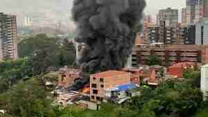 Voraz incendio consumió dos fábricas de icopor en Envigado