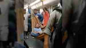 Indignación de los usuarios del Metro por un hombre colgó hamaca en uno de los vagones