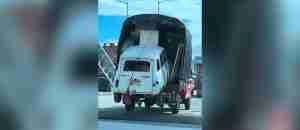 ¿No llegó la grúa? Camión de trasteo es viral en redes sociales por llevar un Renault 4 en su parte trasera