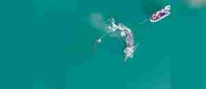 Rescatan una ballena jorobada enredada en una red de pesca