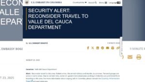 Estados Unidos emite alerta de viaje para el Valle del Cauca por riesgos de seguridad