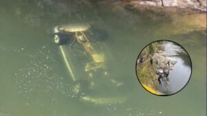 Un carro quedó sumergido en el río Buey, por un descuido del conductor, por fortuna el hecho no dejó víctimas