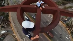 Polémica por jóvenes que escalaron el puente de Punto Cero en Medellín