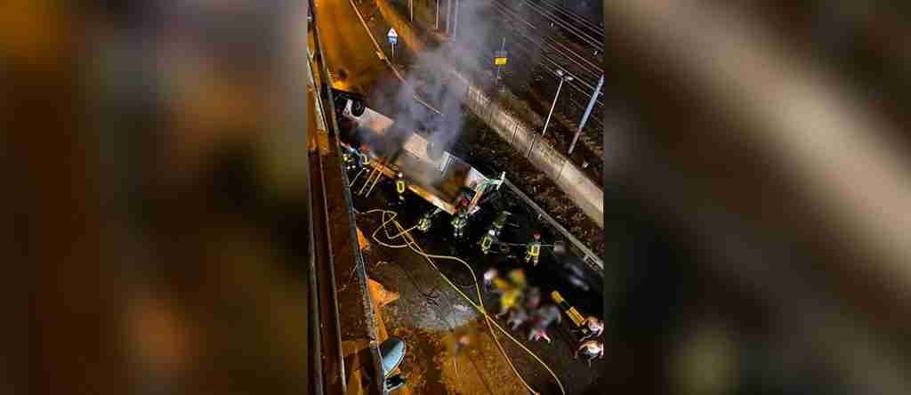 La gravedad del accidente no reside únicamente en la estrepitosa caída del autobús eléctrico, sino en que este, además, se incendió. Apagar las llamas de los vehículos eléctricos es particularmente más difícil que las de los carros a combustible.