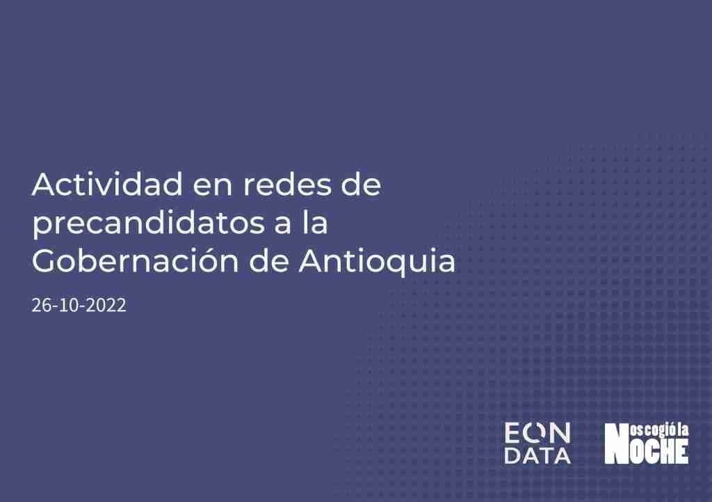 El siguiente informe fue realizado por EON DATA para Nos Cogió la Noche. En este encontrará la actividad de los precandidatos a la Gobernación de Antioquia en Twitter y Facebook en los últimos dos meses.