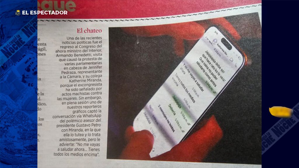 Desde el medio El Espectador, compartieron lo que parece ser un chat de WhatsApp entre el ministro del Interior, Armando Benedetti y la representante a la Cámara, Katherine Miranda.
