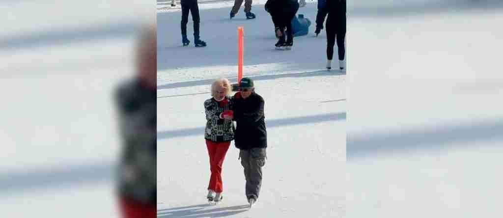 Amor de invierno: pareja de abuelitos protagoniza un encantador espectáculo de patinaje sobre hielo