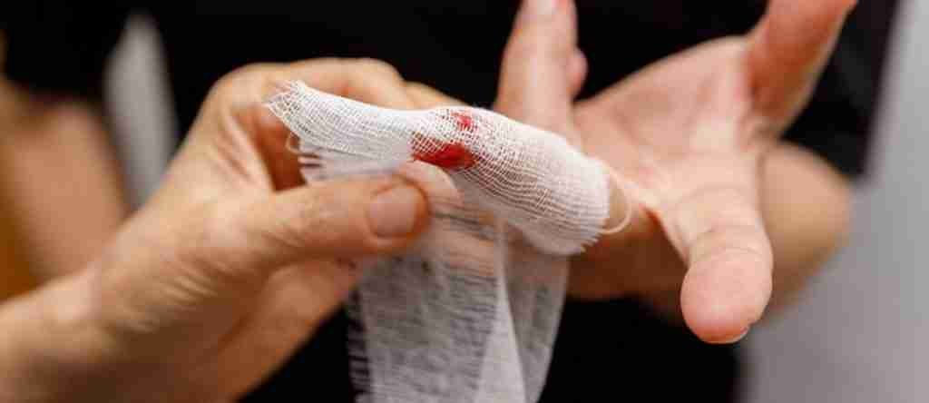Hombre de 27 años de edad, con laceración, contusión y quemadura de segundo grado en la mano. Ocurrió mientras manipulaba papeletas.