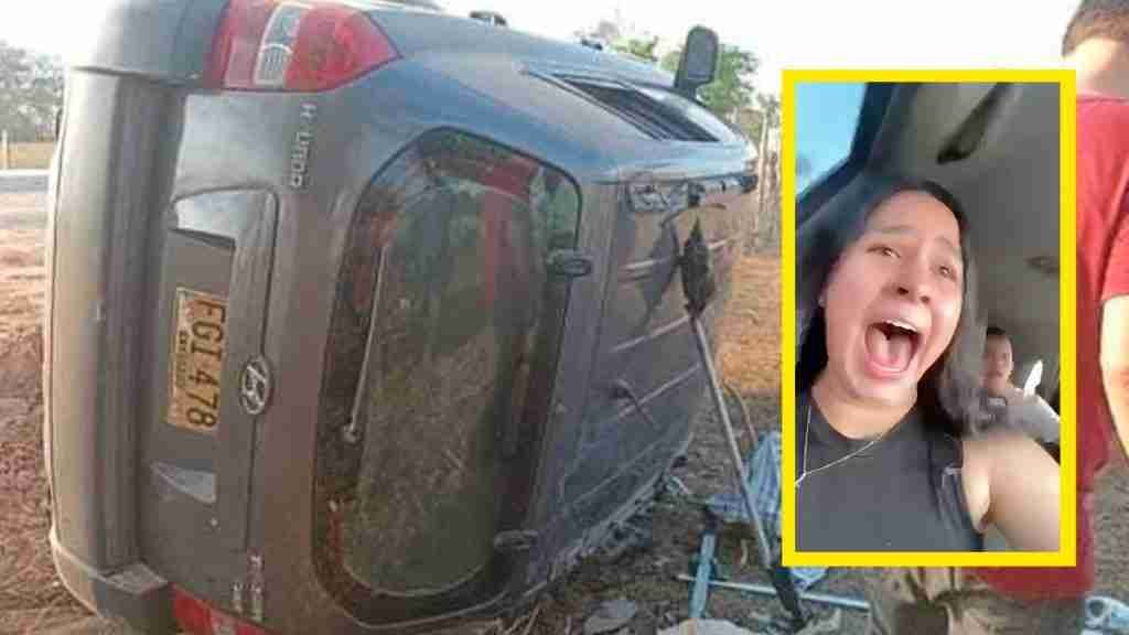 Mientras cantaban la canción California, del reguetonero Feid, en la parte que dice “Bebé me siento en California, porque bebo y no me dicen nada”, el vehículo sufre un volcamiento y se logra ver el susto de los ocupantes del carro y escuchar sus gritos. Al fondo se logra escuchar cuando una joven grita: “Estrellé el carro de mi papá”.