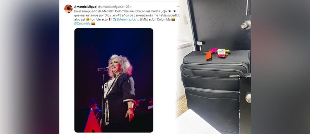La reconocida artista argentina, Amanda Miguel, denunció, por medio de sus redes sociales, que había sido víctima de robo en el aeropuerto de Medellín y agregó que, en 45 años de carrera profesional, nunca le había pasado algo parecido.