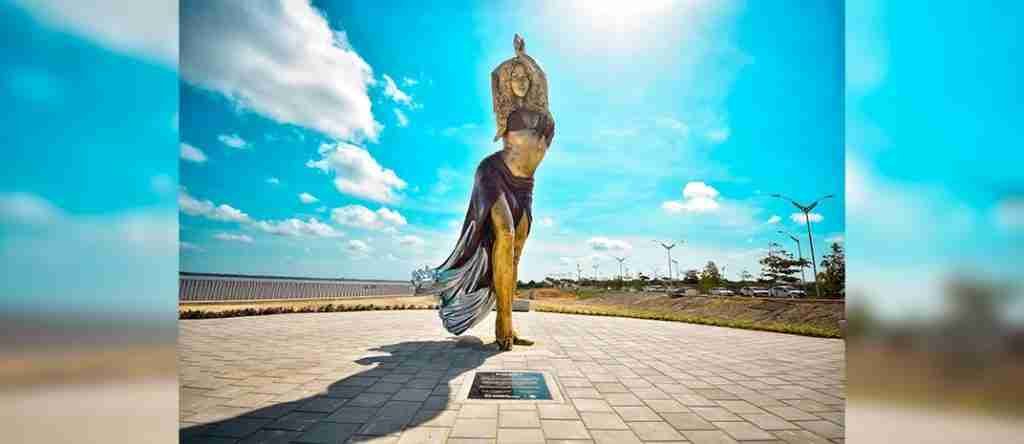La estatua se realizó en cobre, mide 6.50 metros de altura y requirió de la participación de más de 30 obreros para su finalización. Pumarejo aseguró que, con esta estatua, “los barranquilleros se sentirán más orgullosos de nuestro referente de cultura, más cerca de ella y, ella, recibirá un homenaje de parte de la ciudad que tanto ama”.