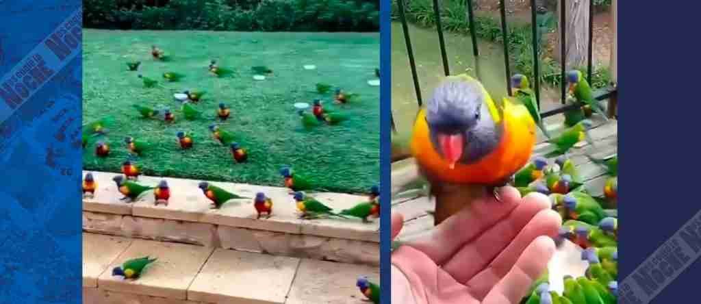 Para sorpresa de su salvadora, una vez el loro se había marchado, decidió tener un gesto inesperado. Una mañana, tal y como se puede observar en el clip, el ave llegó un día a casa acompañado de otro loro de la misma especie, en cuestión de días, hasta cuarenta loros arcoíris se acercaron al hogar de la joven para demostrar su agradecimiento o por lo menos, manifestar lo seguros que se sentían estando cerca de ella.