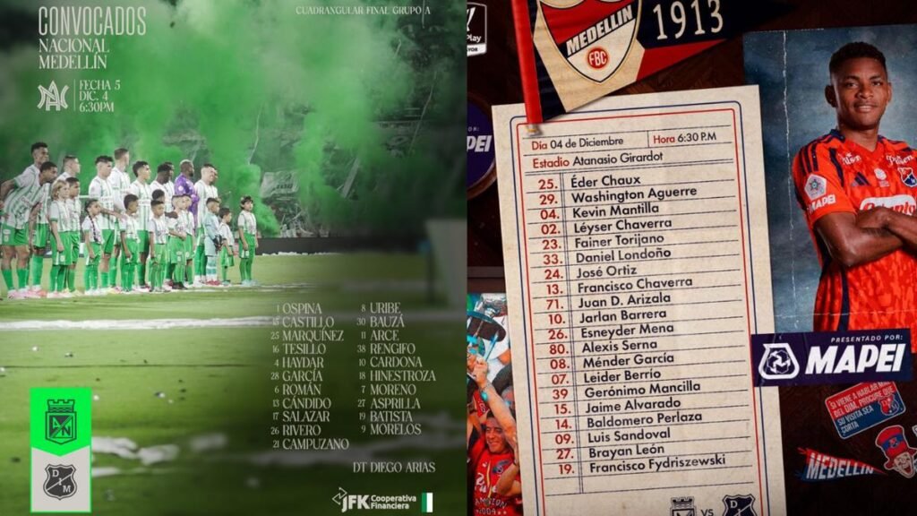 Atlético Nacional y Deportivo Independiente Medellín jugarán esta noche un partido decisivo en el estadio Atanasio Girardot, correspondiente a la quinta fecha del cuadrangular A de la Liga BetPlay 2025-II. El encuentro, previsto para las 6:30 p. m., tiene un aforo cercano a 36 mil espectadores y obliga a ambos equipos a ganar para seguir con vida en la aspiración de clasificar a la final.