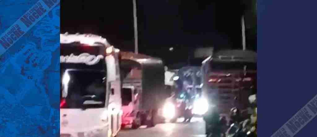 En la noche de este miércoles 10 de abril, los camioneros bloquearon la vía que conduce de Manizales a Medellín, a la altura del peaje de Supía, Caldas, en protesta al alza del peaje que se implementó el 10 de julio.