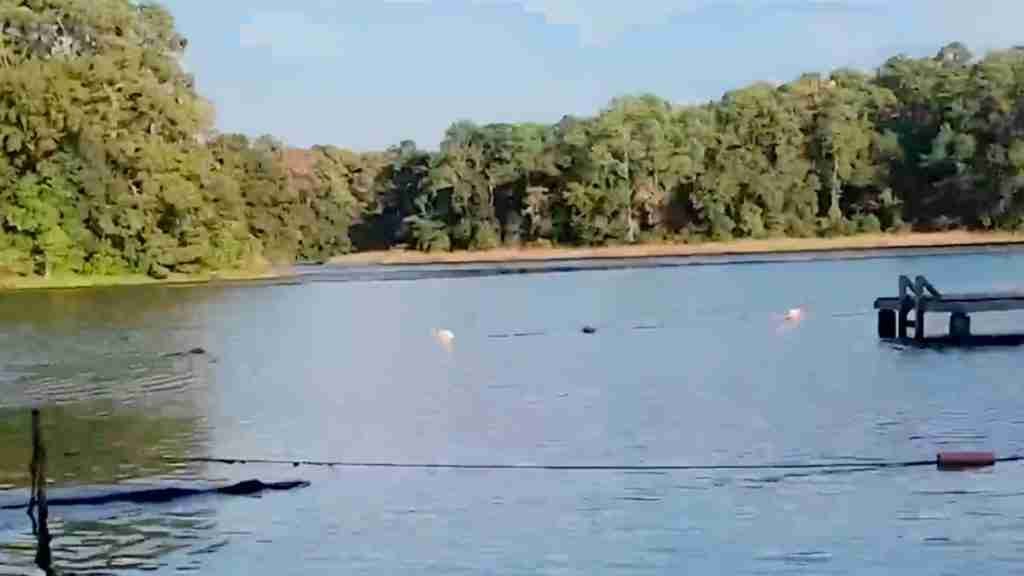 En Houston, Texas, un enorme caimán le dio un gran susto a un grupo de personas que se encontraban nadando en un lago; sin embargo, el lugar contaba con advertencias de la presencia de caimanes.