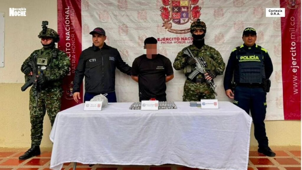 El Ejército Nacional capturó en flagrancia a un hombre identificado como alias «Daniel» o «Político», presunto jefe del Clan del Golfo responsable de actividades en la zona de Ituango, Antioquia. La detención, que tuvo lugar en la vereda El Amparo, incluyó la incautación de 40 barras de explosivos, 98 detonadores aneléctricos y 300 metros de mecha de seguridad, elementos presuntamente destinados a acciones contra la Fuerza Pública y la ciudadanía en cercanías de las elecciones programadas para el 8 de marzo de 2026.