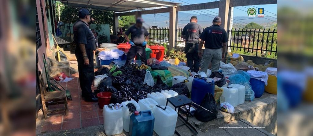«En los procedimientos se incautaron un arma de fuego con 38 cartuchos, 2 armas traumáticas, 18 celulares, más de 5’000.000 de pesos en efectivo; 880 botellas recicladas, que iban a ser reutilizadas, 4.180 unidades de insumos secos, entre marquillas, tapas, estampillas y cajas; sustancias líquidas y producto terminado que estaba listo para venta. Lo encontrado arrojó un peso aproximado de 25 toneladas»: Fiscalía General de la Nación.