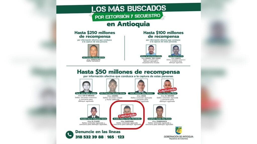 El capturado es uno de los hombres más buscados en Antioquia por las autoridades, por quien ofrecían hasta 50 millones de recompensa por información que llevara a su captura.