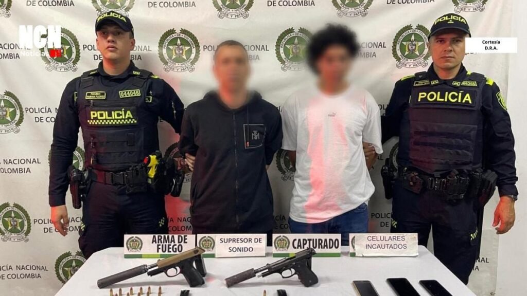 En la noche del 13 de noviembre de 2025, la Policía Metropolitana del Valle de Aburrá capturó a dos hombres señalados de tentativa de homicidio tras atentar contra un comerciante en el barrio Alcalá, Envigado. En el operativo, se incautaron dos pistolas calibre 9 mm con silenciadores, munición y un vehículo.