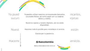 Bancolombia y Nequi sufren nueva caída este viernes 24 de octubre: sin servicio en apps, cajeros ni tarjetas