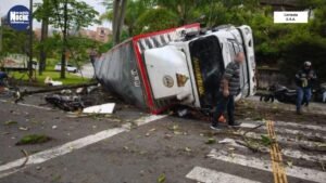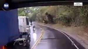 Un motociclista se salvó de morir en los Balsos, cuando un camión sin frenos lo embistió