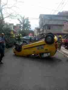 Taxista pierde el control de su vehículo hasta volcarse