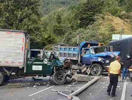 Se presentó un grave accidente en la autopista Medellín – Bogotá, a la altura del kilómetro 11 en el municipio de Copacabana donde, según las autoridades, una volqueta que transitaba en dirección hacia Medellín perdió el control del vehículo derribando un poste e invadió el otro carril, impactando de frente contra otros dos camiones.