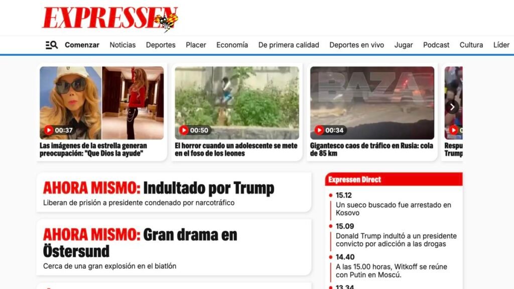 Captura de pantalla. Imagen tomada del sitio web de Expressen.