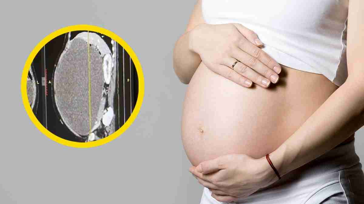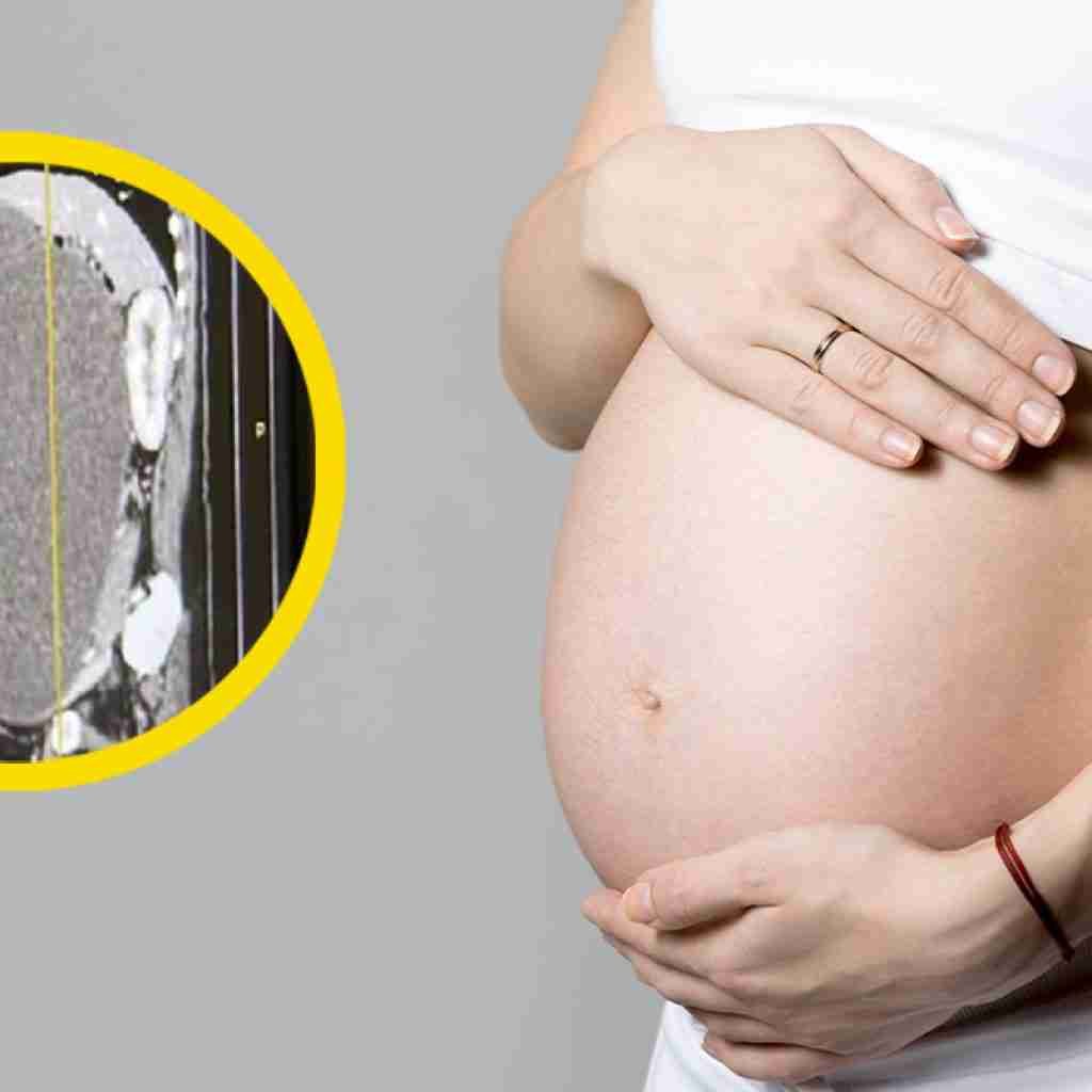 Por medio de un control prenatal, los médicos confirmaron que tenía un tumor de 12 kilos que se originaba en sus ovarios y estaba poniendo en peligro su vida debido a las dolencias y complicaciones que provocaba.