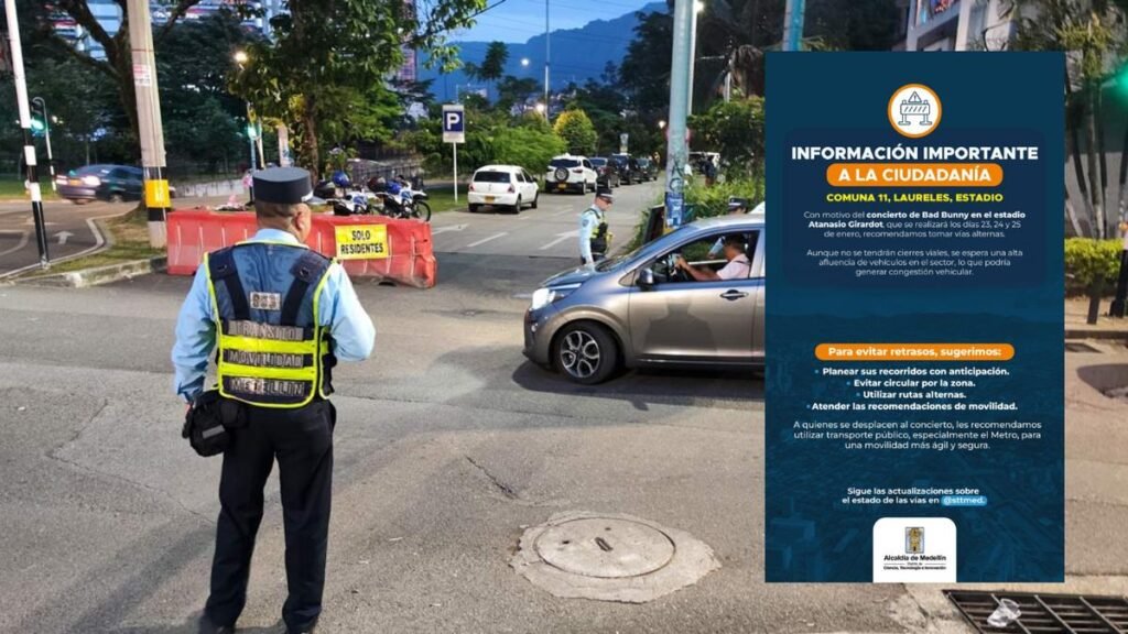 La Secretaría de Movilidad de Medellín informó que los conciertos de Bad Bunny en el estadio Atanasio Girardot los días 23, 24 y 25 de enero no tendrán cierres viales oficiales alrededor del estadio. Sin embargo, se vigilará una alta afluencia vehicular que genera congestión por lo que recomiendan planear anticipadamente los desplazamientos.