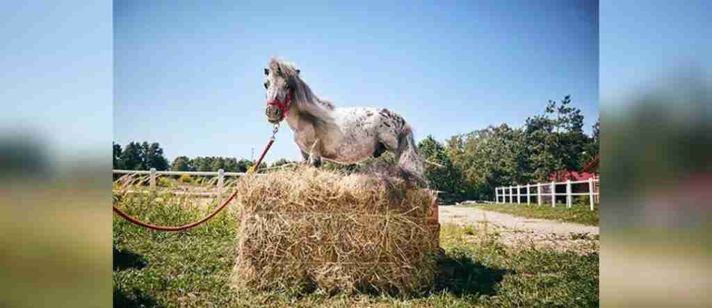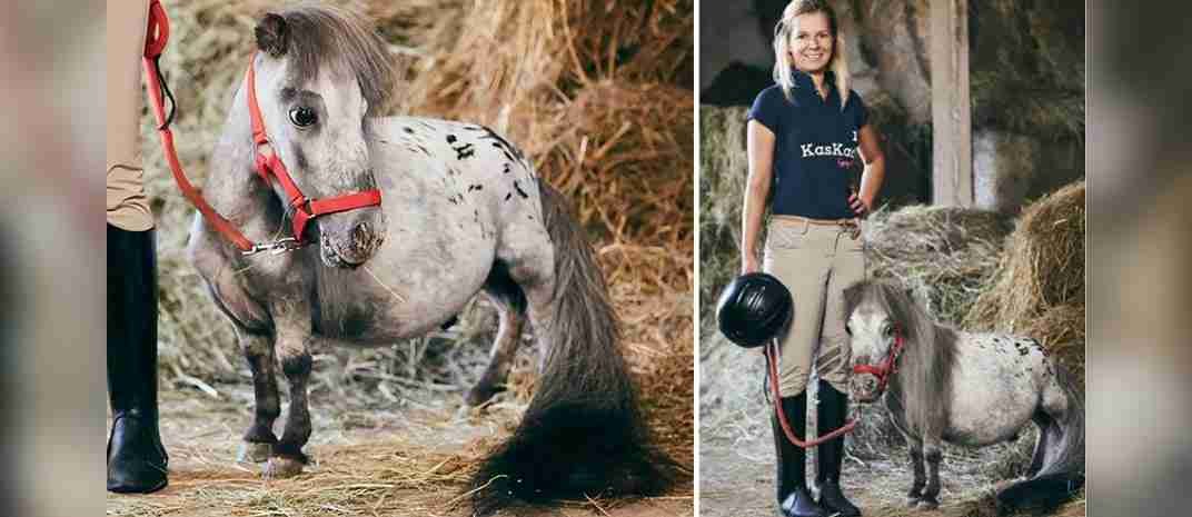Bombel, el caballo macho más pequeño del mundo, es una apalusa en miniatura originaria de Polonia, con una altura de tan solo 56.7 centímetros (1 pie 10 pulgadas) desde las pezuñas hasta los omóplatos.