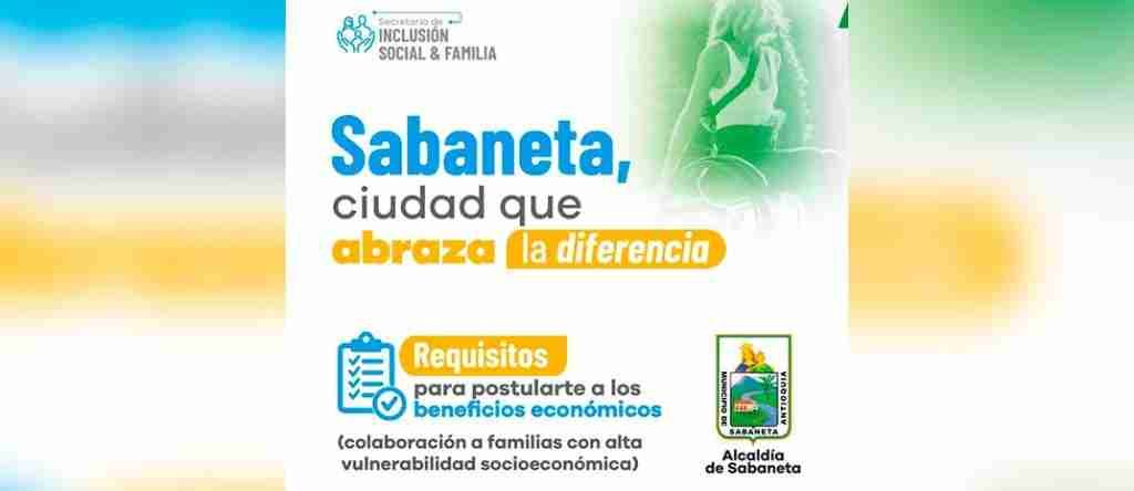 • Ser residente en el Municipio de Sabaneta, con un período mínimo de 12 meses de residencia consecutiva, información validada con el SISBEN.