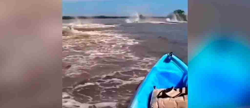 Un video captado por un hombre mientras remaba en el río Amazonas, ha desatado una ola de asombro y especulaciones entre los usuarios de las redes sociales, luego de que se observara inesperadamente unas misteriosas criaturas de gran tamaño.