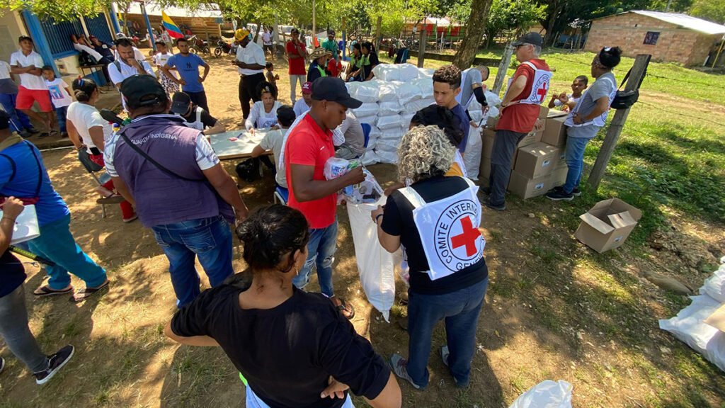 El Comité Internacional de la Cruz Roja (CICR) ha proporcionado asistencia humanitaria a las familias de la comunidad El Socorro, en la vereda del municipio de El Bagre, Antioquia, que han estado desplazadas durante cerca de 15 días debido a los enfrentamientos entre grupos armados. Esta situación ha generado una crisis humanitaria que requiere atención urgente.