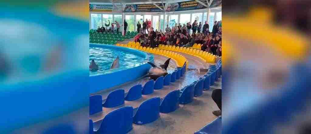 Un video de un delfín saltando fuera de la piscina en el Delfinario Nemo de Minsk, Bielorrusia, ha vuelto a encender las alarmas sobre el debate y la ética de los espectáculos con mamíferos marinos. La grabación publicada por ‘Jaguart org’, una organización sin fines de lucro, muestra al cetáceo saltando desde el agua y cayendo al suelo del auditorio durante un espectáculo.