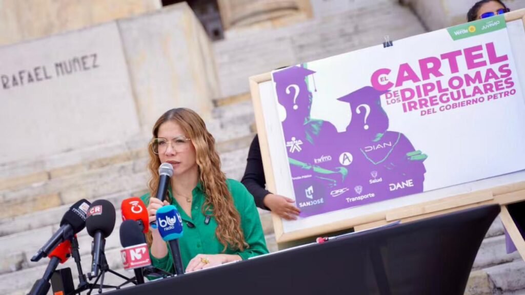 En las últimas horas, la representante a la Cámara por Alianza Verde, Catherine Juvinao, denunció en el Congreso de la República la existencia de un presunto cartel de diplomas irregulares expedidos por la Fundación Universitaria San José. Según la denuncia, estos títulos permitieron vincular a 24 personas en al menos 16 entidades del Gobierno nacional entre 2023 y 2025, generando un gasto estimado para el Estado por encima de 1.100 millones de pesos.