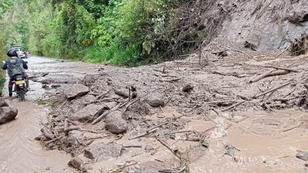Las fuertes lluvias que se han presentado en el suroeste antioqueño generaron un derrumbe en la vía que comunica a Andes con Jardín, en Antioquia, lo que generó el cierre temporal, mientras las autoridades levantan el sedimento que quedó en la vía.
