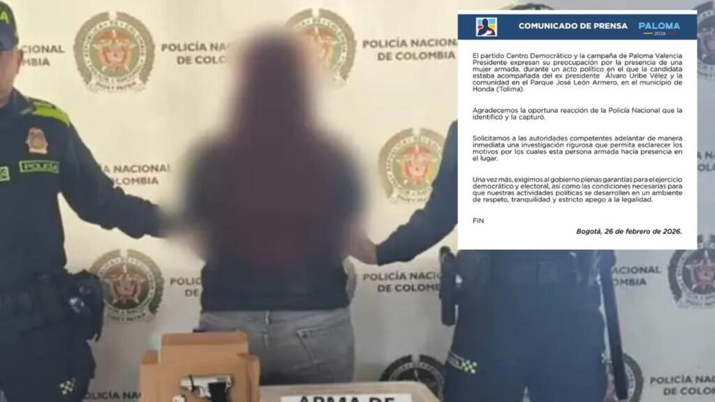 Según informaron las autoridades, a la capturada se le halló una pistola calibre .25 mm, un cargador, cinco cartuchos listos para usar, audífonos y la sustancia estupefaciente, sin que portara autorización para portar el arma. La mujer—identificada como dragoneante adscrita al Centro Penitenciario de La Esperanza en Cundinamarca—estaba a pocos metros de la tarima donde se encontraban el expresidente Álvaro Uribe Vélez, la precandidata Paloma Valencia y varios congresistas y líderes locales. De acuerdo con testigos y personal del esquema de seguridad, la funcionaria tenía un comportamiento sospechoso y grababa la tarima sin mirar el celular, realizando movimientos extraños cerca de la multitud y observando en diferentes direcciones.