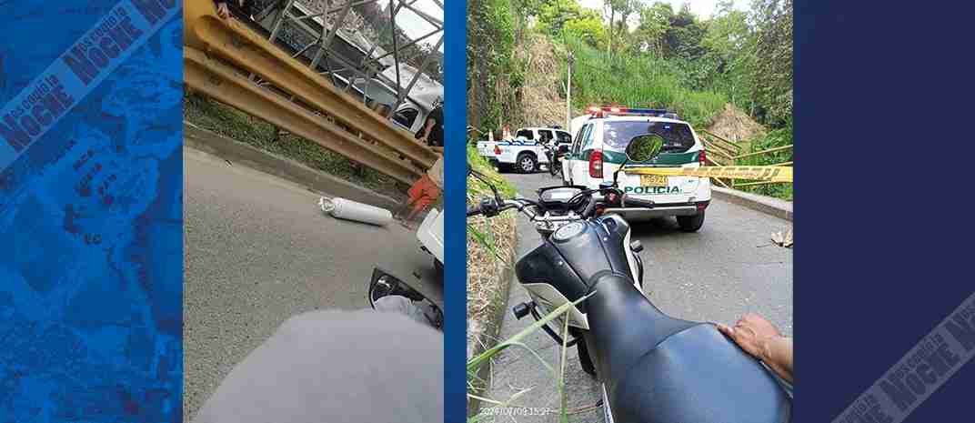 En otro ocurrió en la vereda La María, del municipio de Itagüí, donde una moto que se quedó sin frenos en esta peligrosa vía se salió de la carretera, rodó por un barranco y terminó estrellándose más abajo de la vía. Este trágico accidente cobró la vida de una mujer y un hombre quedó gravemente herido.