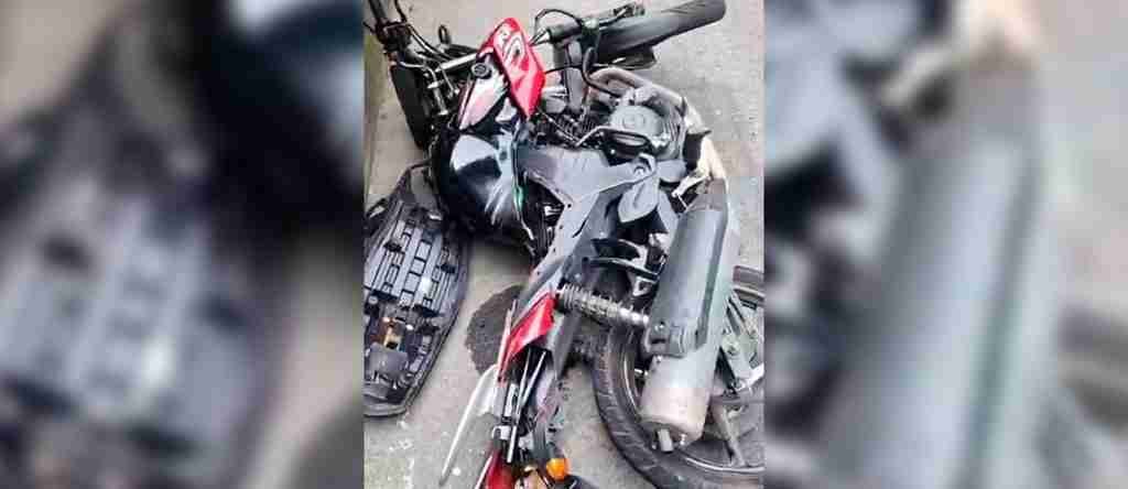Un fuerte accidente se presentó en Envigado, cuando una camioneta embistió una moto en la que iban dos hombres que acaban de atracar a una persona y estaban huyendo de la Policía. Los dos motociclistas quedaron tendidos en el piso por el choque.