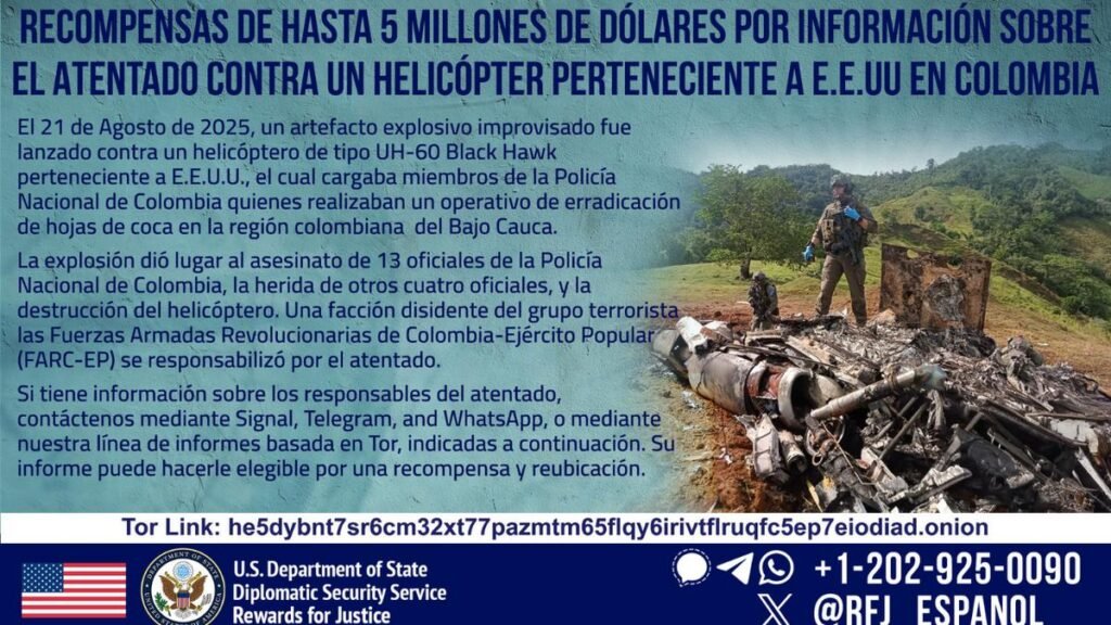 Este lunes 21 de agosto de 2025, un atentado estremeció Amalfi, Antioquia, dejando una estela de dolor y pérdida: 13 policías muertos y un helicóptero Black Hawk destruido en plena operación antinarcóticos.