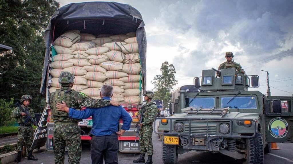 El Ejército Nacional frustró el robo de un cargamento de café valorado en más de $1.000 millones en la madrugada del 31 de julio de 2025, en Cajibío, Cauca. La acción conjunta con la Policía Nacional permitió la recuperación de una tractomula con 32 toneladas de café de exportación y la captura de dos presuntos integrantes de las disidencias Jaime Martínez, señalados como responsables del hurto.