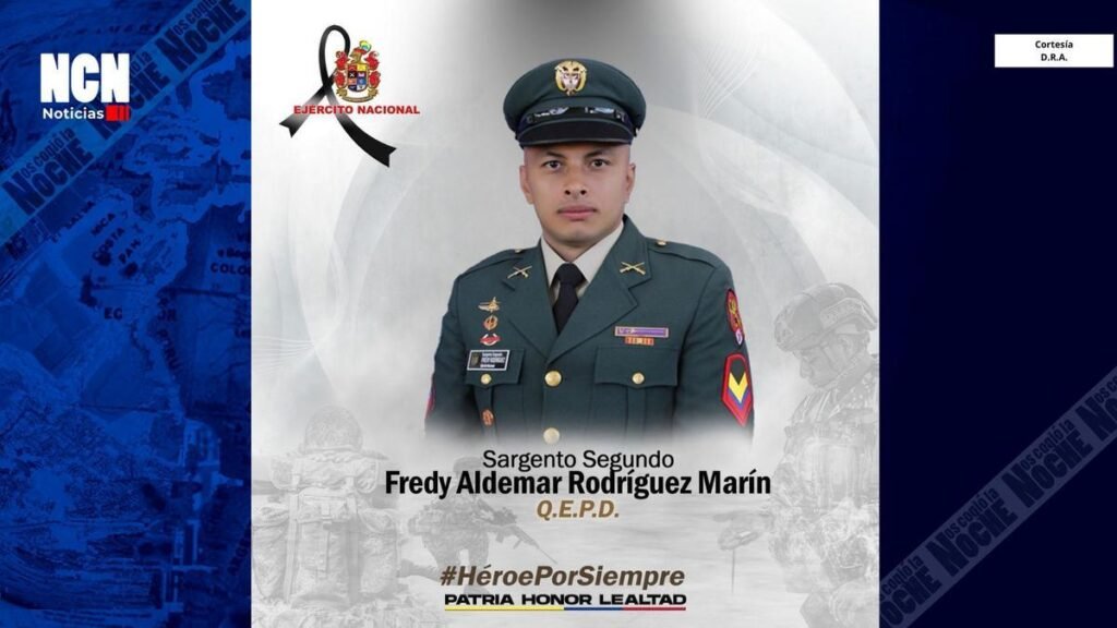 “Ofreció su vida en cumplimiento del deber, demostrando un compromiso inquebrantable con la seguridad de la comunidad”, indicó el Ejército Nacional sobre Rodríguez Marín. Además de su acción heroica, en la operación se incautaron un arma corta, municiones de distintos calibres, memorias USB y prendas exclusivas de las Fuerzas Militares y Policía Nacional.