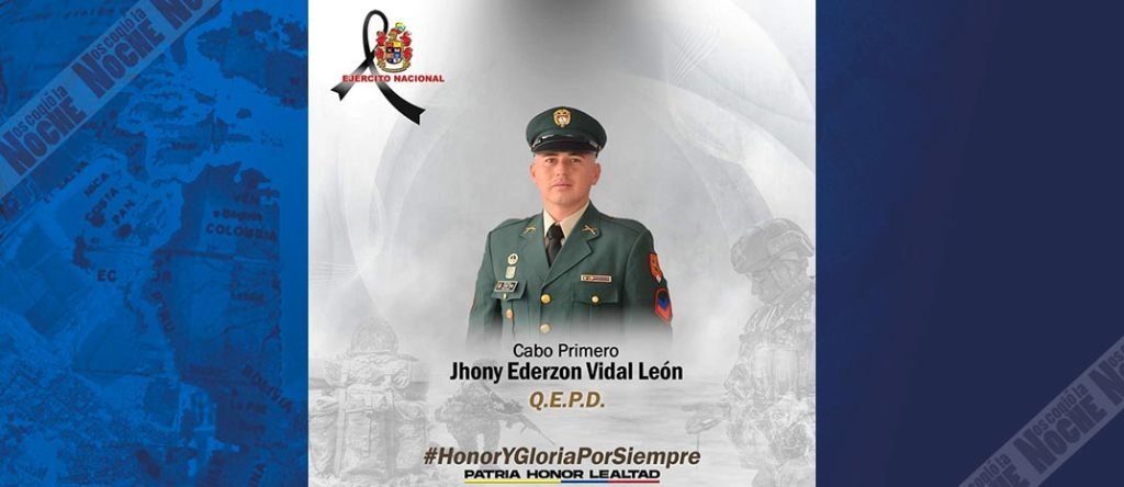 El Ejército Nacional confirmó que, en el municipio de Pueblorrico, Antioquia, fue asesinado el Cabo Primero Jhony Enderzon Vidal, cuando adelantaba operaciones contra el Clan del Golfo.