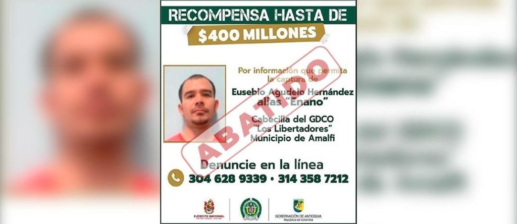 En combates sostenidos en zona rural de Amalfi, las autoridades dieron de baja a 3 presuntos delincuentes, entre ellos, alias ‘El Enano’, presunto cabecilla de un grupo delincuencial que ha generado el terror en el Nordeste antioqueño.