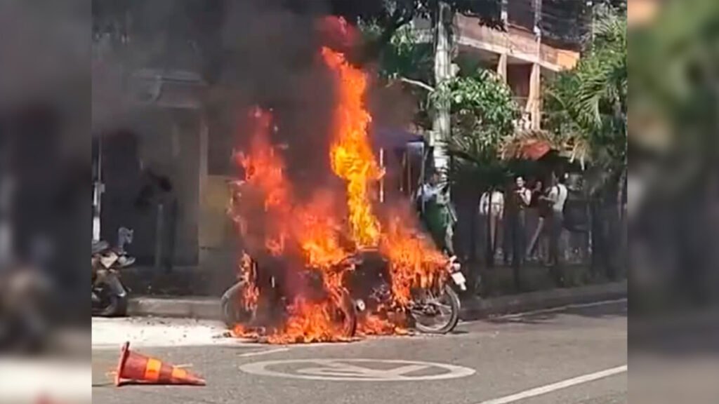 Según información ciudadana, estos hombres se encontraban en dos motos esperando su víctima a las afueras del centro comercial Puerta del Norte, situación que originó la reacción de la comunidad, la cual los golpeó y les quemó los automotores.