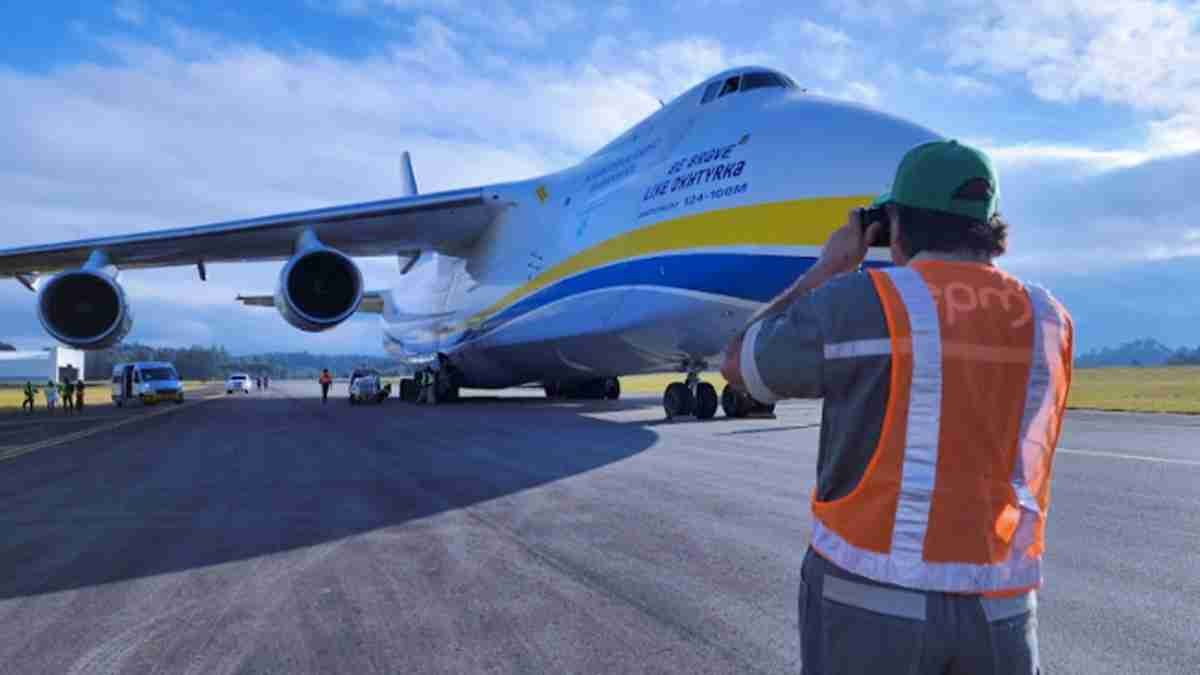 La aeronave aterrizó en el aeropuerto José María Córdova este martes 27 de junio con la primera de las cuatro compuertas que se instalarán mediante trabajos subacuáticos a 60 metros de profundidad en la central Hidroituango.