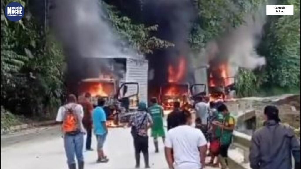En la mañana del miércoles 3 de septiembre de 2025, tres camiones de carga fueron interceptados, saqueados y prendidos fuego en el sector de Peñas del Olvido, en la vía que comunica Pereira con Quibdó, dejando la vía cerrada y generando alarma entre las autoridades locales.