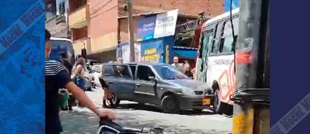 El hecho quedó grabado en video, en el cual se ve como un choque de solo latas entre un vehículo particular y un bus de servicio público, terminó en una fuerte agresión entre conductores, donde el que manejaba el particular agarró a golpes con un objeto contundente al bus, lo que generó que el conductor del bus retrocediera para impactar el carro, quedando los dos automotores con daños considerables.